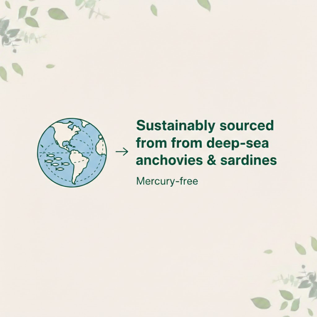 Our omega-3 is sustainably sourced from deep-sea anchovies and sardines and purified to be mercury-free — so you get clean, responsible nutrition you can trust.
